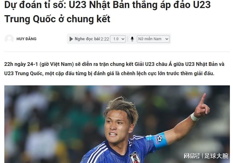 越媒Tuoitre发文(上图)预测这场决赛,认为日本队将以压倒性优势战胜中国U23。